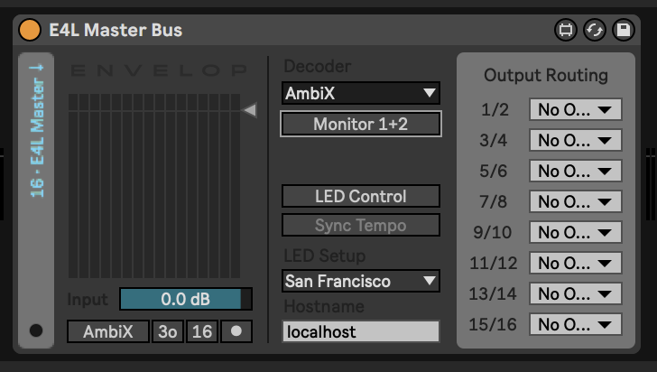 This Max for Live device enables monitoring of the ambisonics output from the Envelop Master Bus.