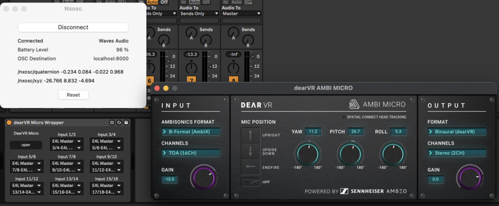Start the Nxosc and connect your head tracker. Setup an Ableton session with Envelop.